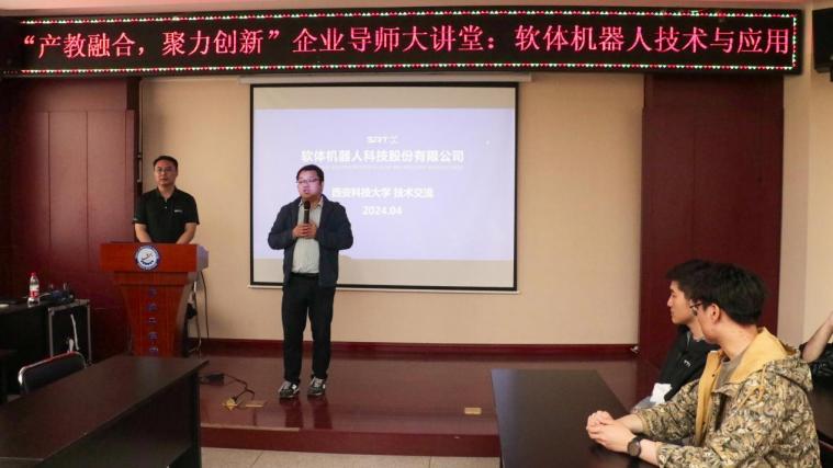 152024.044月13日上午,北京软体机器人科技股份有限公司在我校骊山校园10-320进行软体机器人技术与应用校园宣讲。北京软体机器人科技股份有限公司技术总监黄巍、西北地区负责人苏鑫、工程师刘坤奇,机械工程学院智能制造系主任杨满芝副教授,赵江滨副教授、楚景慧副教授,辅导员王晓康老师,以及学院各专业本科生近200人参加该次宣讲。本次讲座主讲人黄巍,在北京软体机器人科技股份有限公司软体机器人教育事业部担任技术总监一职,在工...