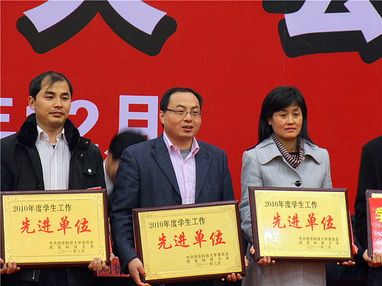 12月14日,西安科技大学2010—2011学年学生工作先进集体、优秀个人表彰大会在临潼校区体育馆一楼大厅隆重召开。我院荣获2010年度“先进单位”荣誉称号。