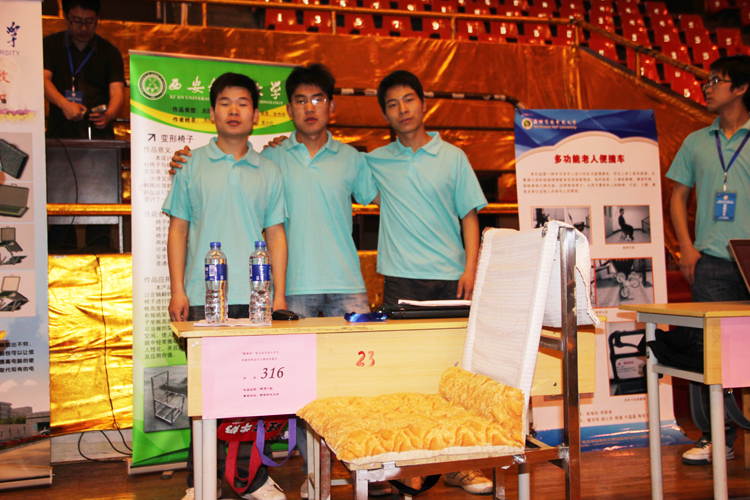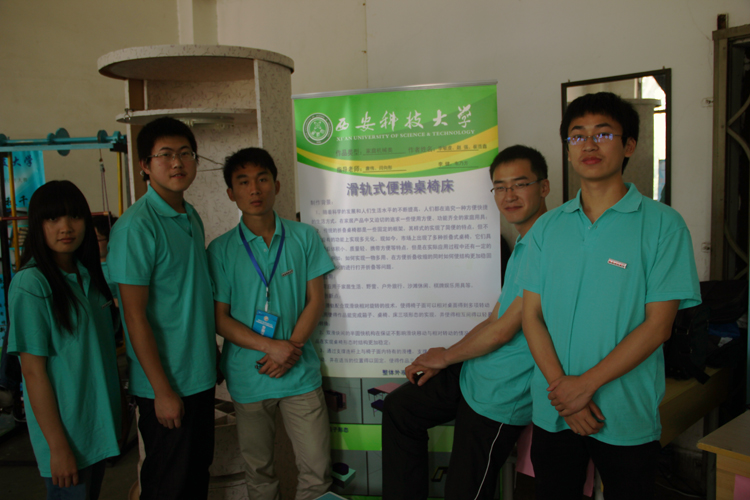 5月5日至6日,以“幸福生活——今天和明天”为主题的第五届全国机械创新设计大赛(陕西赛区)在西安石油大学举行,我校选派10件作品,共48名学生参加了本届大赛,最终全部获奖,其中3件荣获陕西赛区二等奖、7件荣获陕西赛区三等奖。由李敏虔等同学制作的“滑轨式便携桌椅床”、王振宇等同学制作的“可变形便携式婴儿车床”、刘康凯等同学制作的“多用途娱乐健身椅”,获得了二等奖。并且西安科技大学获得了优秀组织奖。