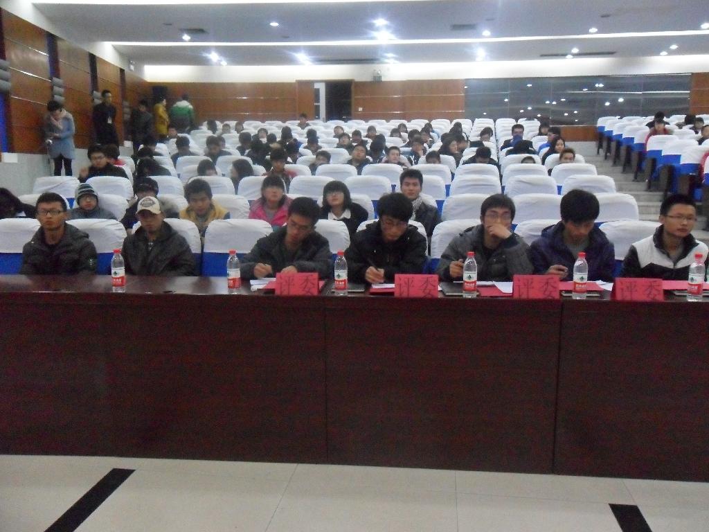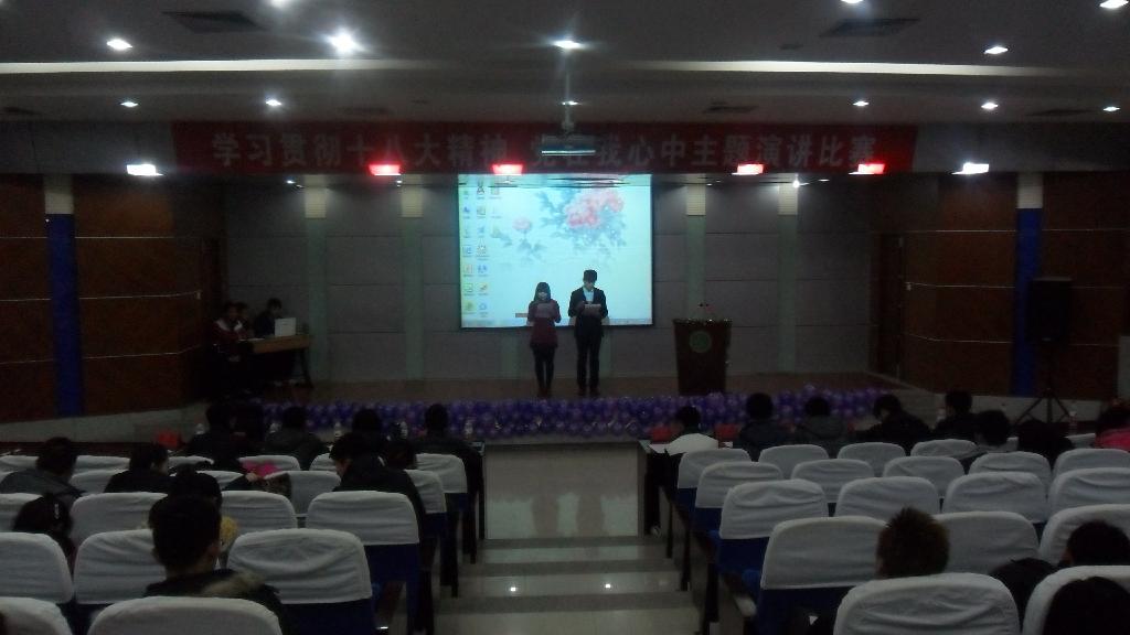12月2日晚,由我院承办的以“学习贯彻党的十八大精神,党在我心中”为主题的校级演讲比赛顺利举行,地点在临潼校区图书馆二楼报告厅,各学院均有选手参加。此次比赛是全校性的大型活动,对我们学习贯彻十八大有着极为重要的意义。 比赛的到场人员有十位来自各学院学生会代表、二十一位参赛选手以及各院部分学生。