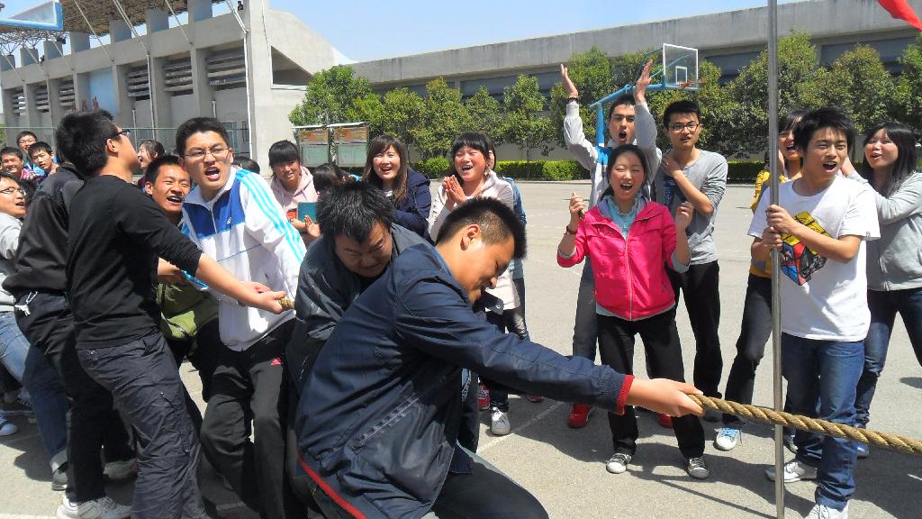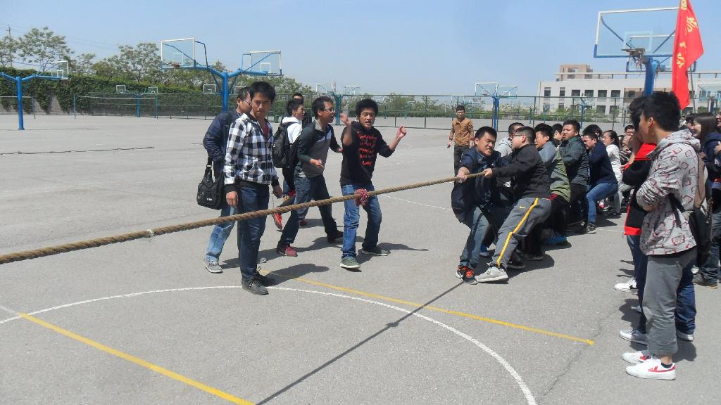 4月10日中午12:40,在第十一届体育节拔河比赛中,我院与材料学院在校西篮球场进行了八强争夺赛,并轻松取得胜利。