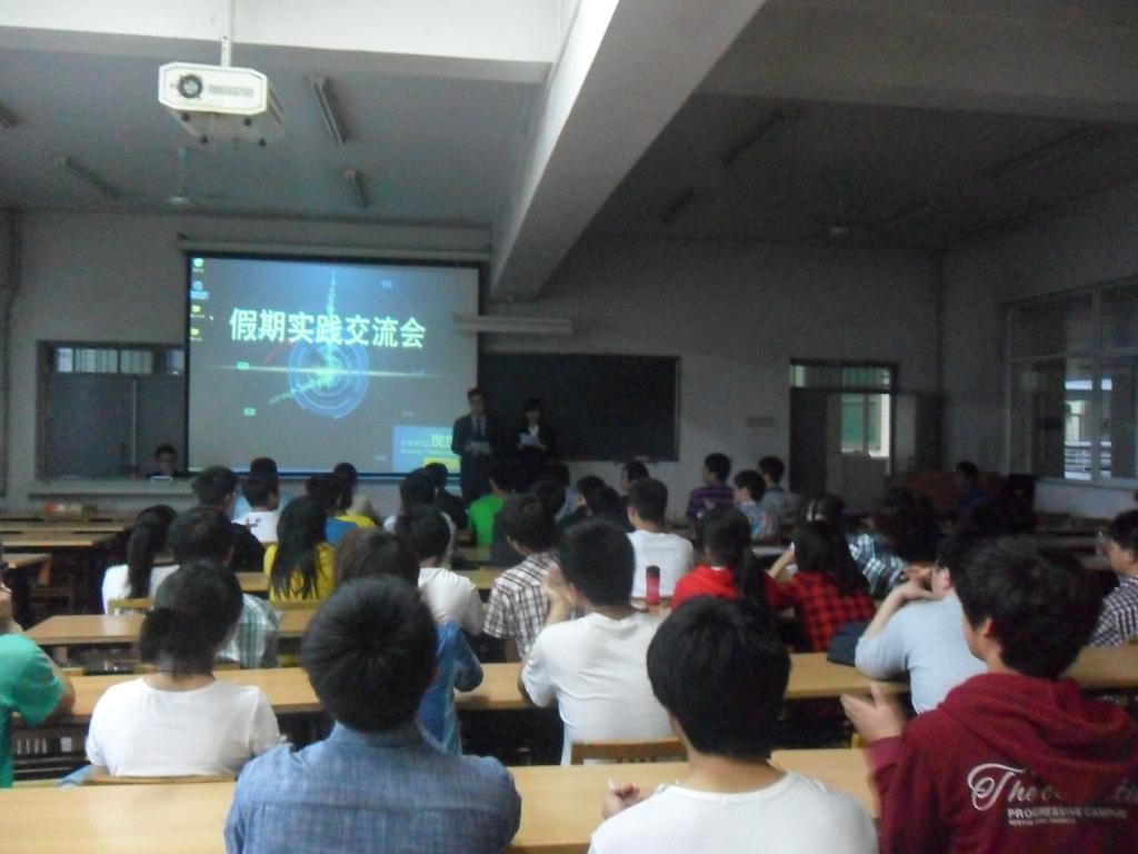 4月26日晚,我院在3教409室举行假期实践交流会决赛,团委书记陈霂老师、辅导员程鹏老师与学生会干部出席交流会并参与评分。