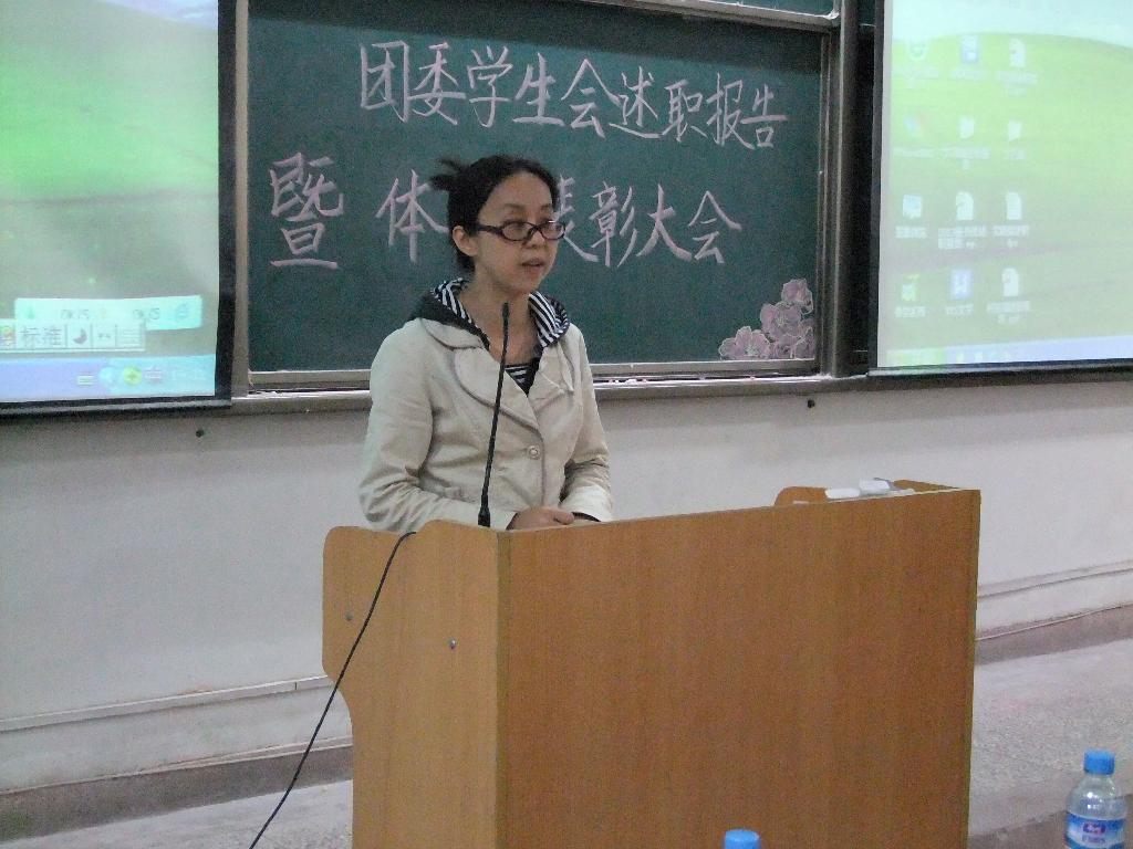 学生会主席刘志勇发表报告