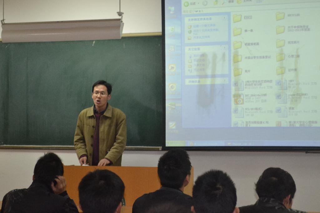 11月29日中午,机械工程学院在10号教学楼502教室举办了心理健康教育专题辅导报告会,邀请校心理咨询中心咨询师靳伟涛做专题辅导。报告会由学院辅导员杨建涛主持,学院学生会心理部全体干部,2013级班级心理委员、宿舍长80余人聆听了报告会。