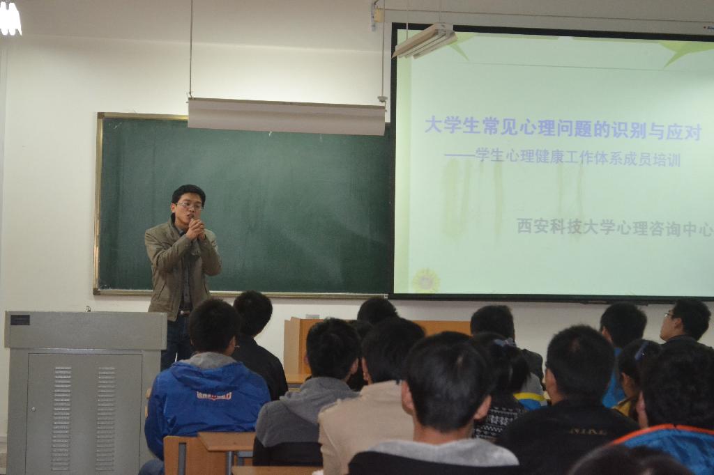靳老师从心理健康与不健康的概念引入报告主题,紧紧围绕大学生常见的心理问题以及应对方法,结合实际工作案例,为从事心理健康教育工作学生干部的工作方法做了全面指导。报告会气氛活跃,学生们深受启发。