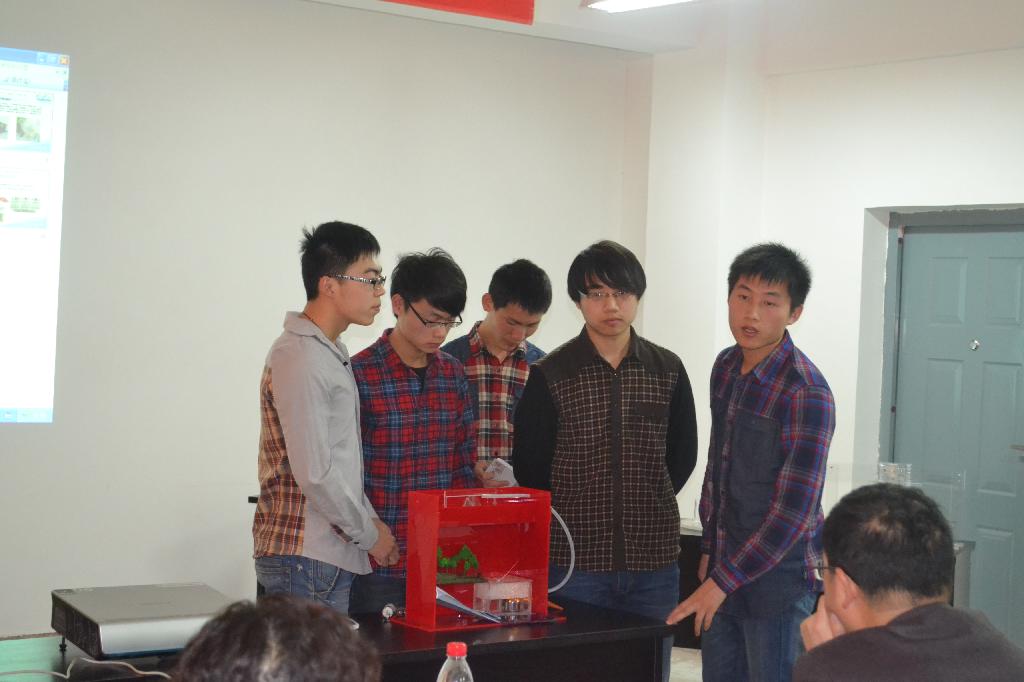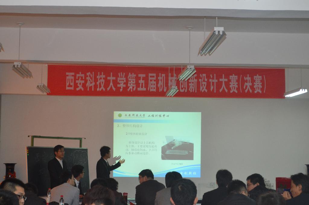 2014年3月23日上午9:00,我校第五届机械创新设计大赛决赛终审答辩会在10#320会议室顺利召开,大赛的专家评委、指导教师、组织人员、参赛团队及学生代表参加了本次活动。经过PPT展示、实物讲解、回答提问三个环节的激烈角逐,最终,《梦幻三球仪》、《大气水循环演示仪》2项作品获得一等奖,《凸轮轮廓绘制演示仪》、《多普勒效应演示仪》、《全息投影桌》3项作品获得二等奖,《矿井液压支架》、《矿井通风演示系统》、《矿井井深测试仪的显示系统》、《绿色黑板》4项作品获得三等奖。