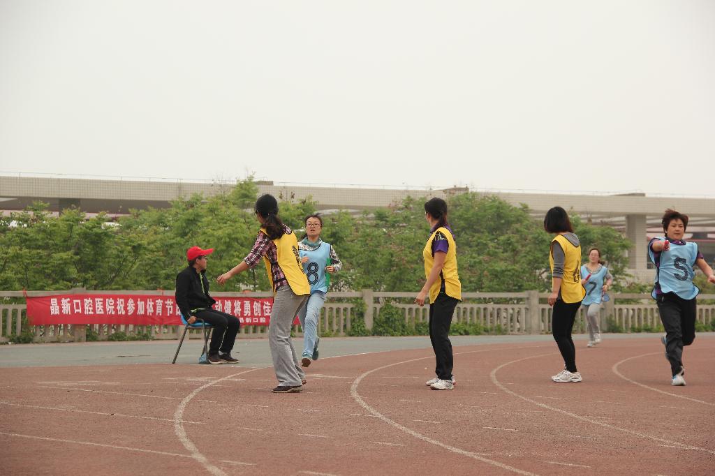 4月24日早上,我院教工女子组4×100米接力赛夺得第三。
