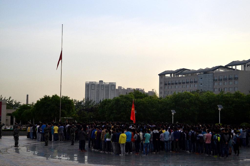 2014年5月12日清晨,伴着熹微的晨光,我院辅导员陈霂老师与李彩虹老师亲自带领12级、13级全体学生聚集在中心广场参加了升旗仪式。