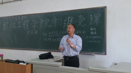 5月11日16:00,我院第四十三期初党培训第五讲在1教211进行,本次党课由机械工程学院赵小强书记主讲,各学员积极参加。 课上,赵书记从《共产党宣言》讲起,讲述了刘少奇主席的《论共产党员的修养》,“群众路线”,“八千九百万”党员,改革开放,直至现在的环境问题——PM2.5,“最脏”城市等问题,最后围绕科学发展观与GDP进行讲解,圆满的结束了本次初党培训。 本次虽是最后一讲,但同学们对学习初党知识的积极性不减,对于初党有了一定的认识。
