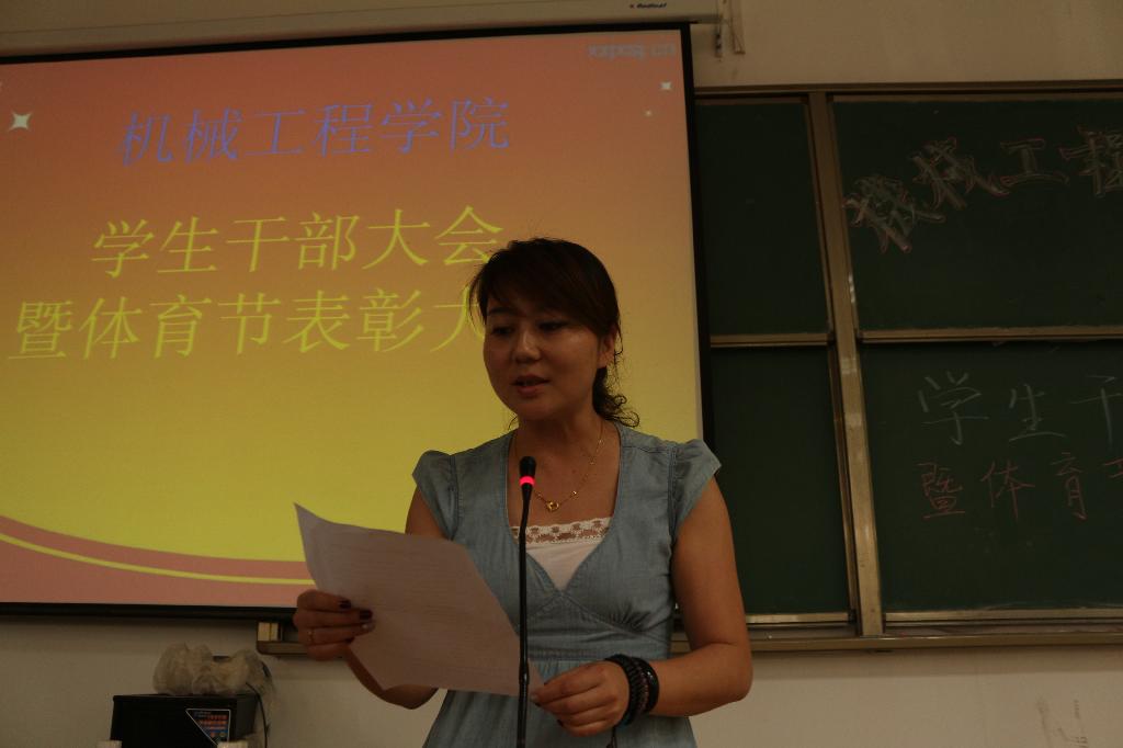 5月30日13点,机械工程学院在9教105教室召开了学生干部大会暨体育节表彰大会。大会由陈霂老师主持,莅临此次大会的有我院党委副书记李婉丽老师、辅导员张耿、张立显、张晶晶、杨建涛、程鹏、芮智刚,参加此次会议的还有我院团委学生会全体成员、各班级班长、团支书、文体委员等学生干部。