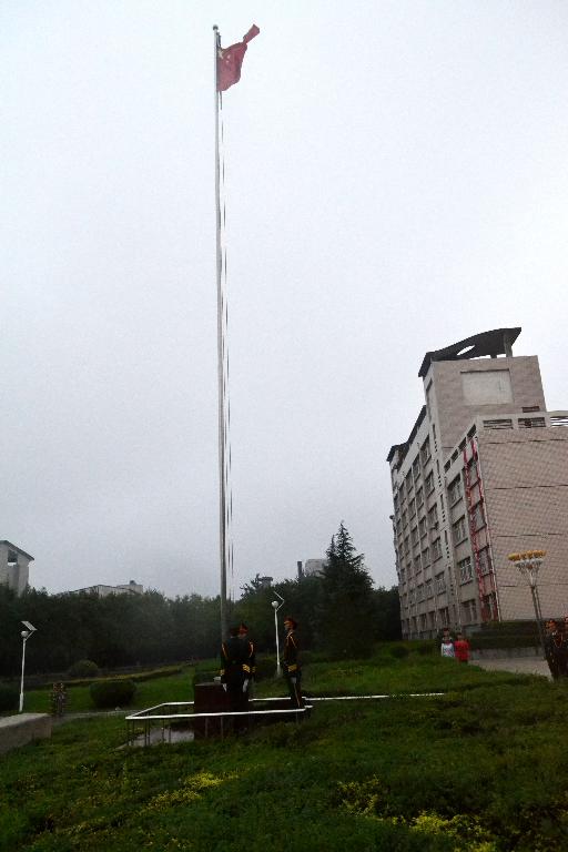 916日清晨6点半,机械学院、建工学院师生齐聚临潼校区中心广场,举行“践行社会主义核心价值观”主题升国旗仪式。受近期阴雨天气影响,由机械学院、建工学院联合举行本学期首次升国旗仪式。机械学院分团委书记杨建涛、建工学院分团委书记汪洋以及两个学院的分团委学生会主要学生干部、2014级新生参加了本次升国旗仪式。
