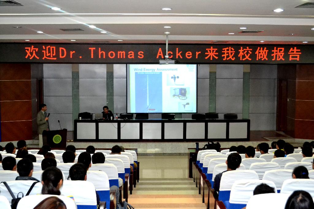 托马斯·艾克教授围绕北亚利桑那大学本科人才培养的模式,本科生开展科研的情况以及本人从事新能源开发与利用的研究进展做了全面而详细的报告。最后,托马斯·艾克教授和学生进行了广泛而热烈的交流互动。