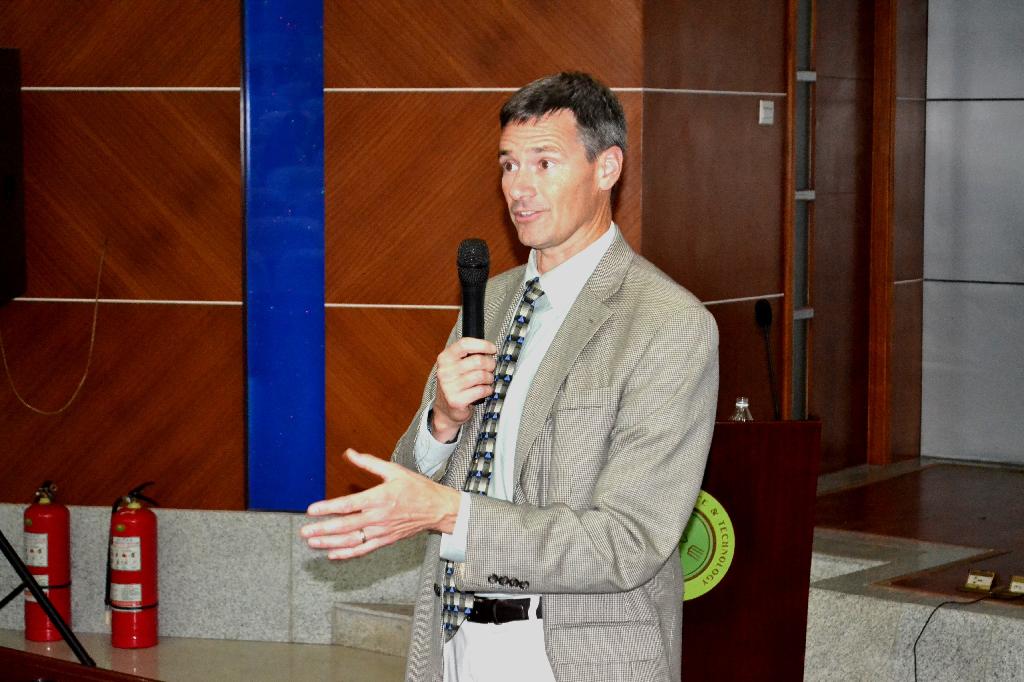 2014年10月15日下午,受机械工程学院邀请,美国北亚利桑那大学托马斯·艾克教授在临潼校区图书馆报告厅为我校师生做专题报告。报告会由机械工程学院副院长曹现刚教授主持,学院党委副书记李婉丽和团委书记杨建涛及我校300余名学生聆听了报告会。