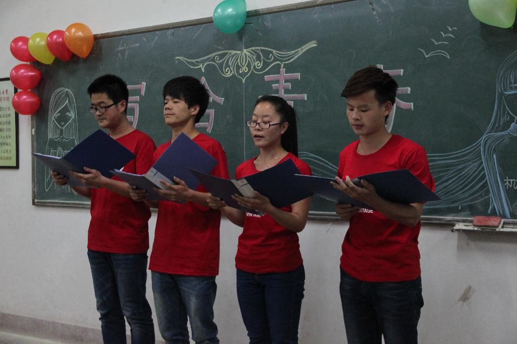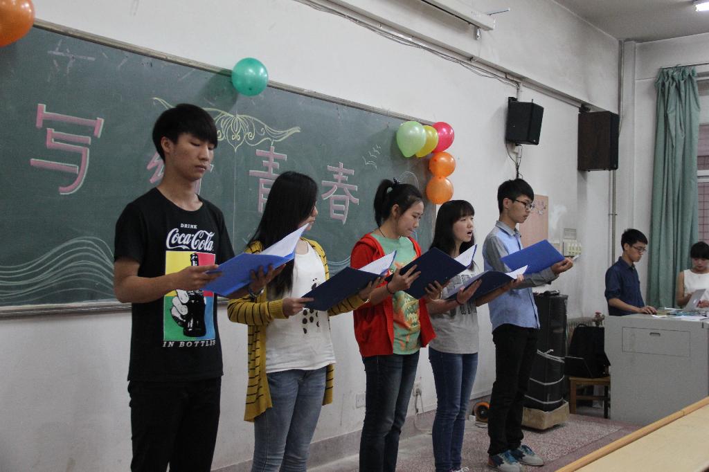 经过初赛的角逐,进入决赛的共有八个队伍。决赛分为两个环节:一是参赛队伍对自备稿件的朗诵,二是在队伍中随机挑选一人朗诵指定稿件。比赛中,选手们在一首首背景音乐下阐释了自己对青春的感悟。或激昂,或柔缓,或急促,或随和,有的诠释了对梦想的热爱,有的满怀激情的述说着美好未来,有的深情款款的回忆着青春的甘甜。经过各个队伍的精彩表现,最后,由“sparks fly"队获得了第一名,放飞青春队,六人行队分别获第二名和第三名。