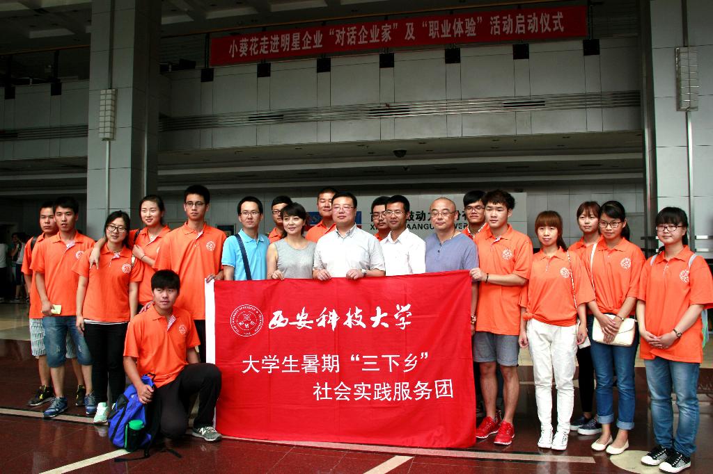 2015年暑期,机械工程学院“小葵花进名企”社会实践服务团带领留守儿童、流动儿童走进西安市明星企业,开展对话企业家、职业体验活动。