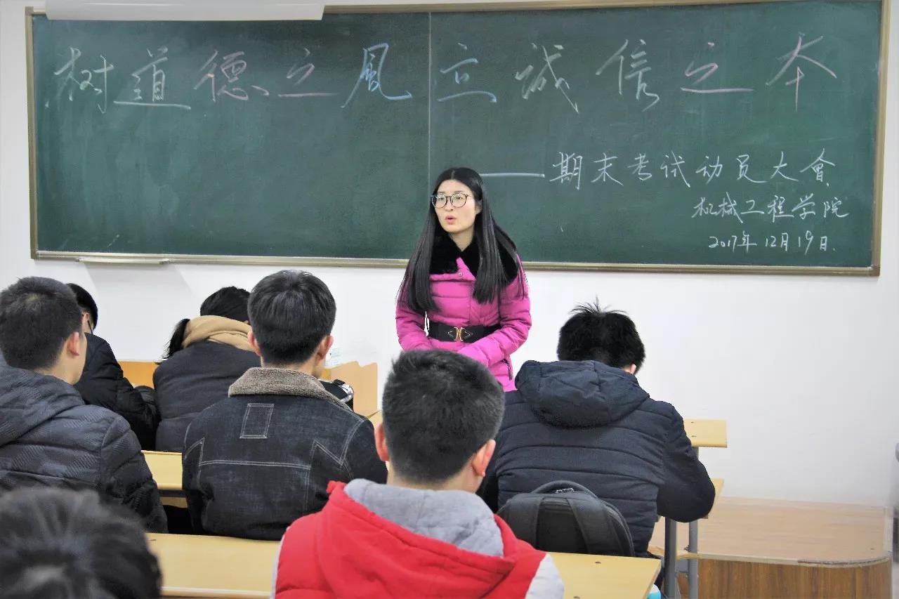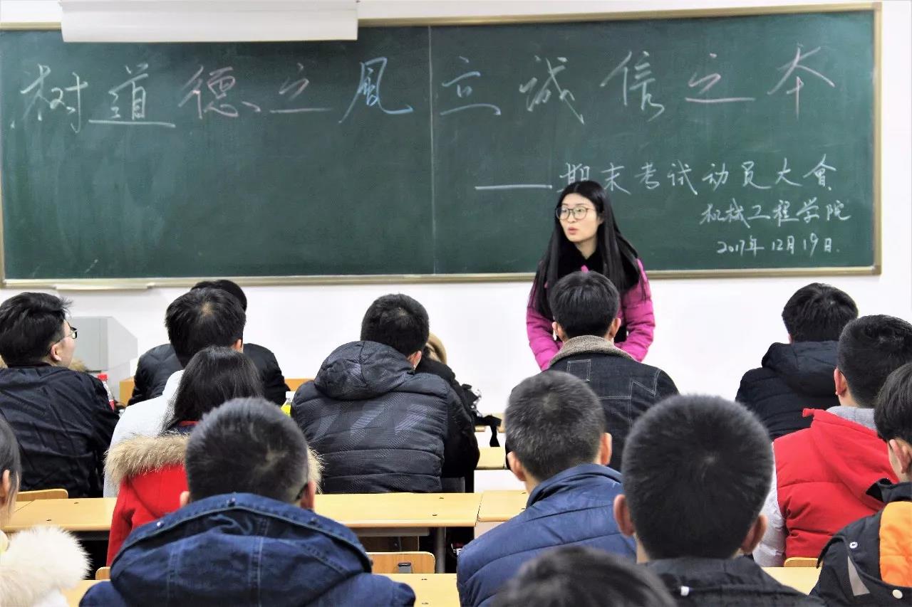 期末考试即将来临,为了提高同学们对期末考试的重视程度,端正考风,严肃考纪,创建优良校风学风,进一步增强学生纪律意识!机械工程学院于2017年12月19日晚在临潼校区10教501教室召开2016级“树道德之风,立诚信之本”期末考试动员大会,会议由2016级辅导员杨芝老师主持,各班班长、团支书、学委及生活委员参加。