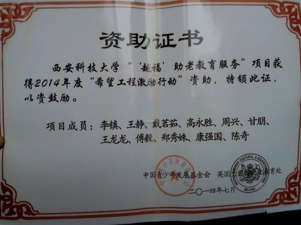 5月5日上午,首届陕西省青少年公益项目大赛在西安落下帷幕,我院“越福助老”志愿者服务公益项目从287个项目中脱颖而出,荣获金奖!省委宣传部副部长、省文明办主任龚晓燕,团省委书记李豫琦等为获奖代表颁奖并启动陕西省青少年公益项目创投基金。