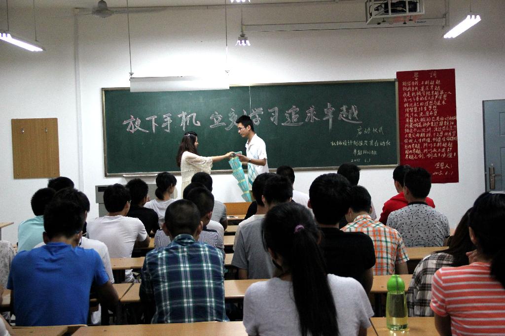 相信自我,不断超越。挑战自我,追求卓越。6月1日晚7:00机械工程学院机械设计制造及其自动化卓越1401班在10教503室举办放下手机,立刻学习,追求卓越活动启动仪式,吕叻加辅导员及2014级机设专业各班班长,团支书,学习委员出席了这次活动。
