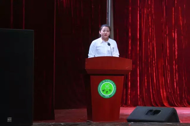 之后由在校学生代表工业工程1402班王欣怡同学以及新生代表机械类1714班杨健康同学发言。王欣怡同学分享了在校学习期间的学习经验和心得,鼓励新同学积极创新,营造一个美好的大学生活。杨健康同学表达了2017级全体同学的心声,要发奋图强、团结友爱和锐意创新,以良好心态去迎接到来的大学学习生活。