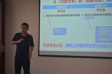 报告中,包能胜教授立足于提高人才培养质量,从专业认证、OBE、CDIO等核心概念入手,并结合汕头大学工程教育改革和认证经验,讲授了工程专业认证的核心内涵、基于学习结果教育(OBE)理念和CDIO工程人才培养模式,并针对我院专业认证申请书中出现的“培养目标撰写”等问题给出了具体建议。与会教师普遍反映,讲座的实用性和针对性很强,收获很大。