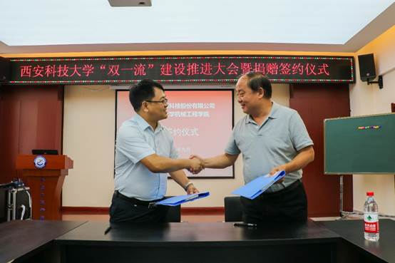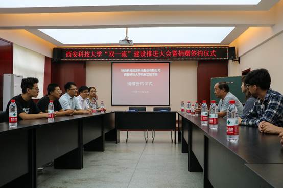 9月14日下午,陕西科隆能源科技股份有限公司与机械工程学院“贫困生教育资助基金”设立签约仪式在临潼校区骊山校园学院会议室举行。陕西科隆能源科技股份有限公司副总经理王平、人力资源部部长姚瑶,机械工程学院院长张旭辉、副院长赵栓峰及部分学生代表参加了签约仪式。