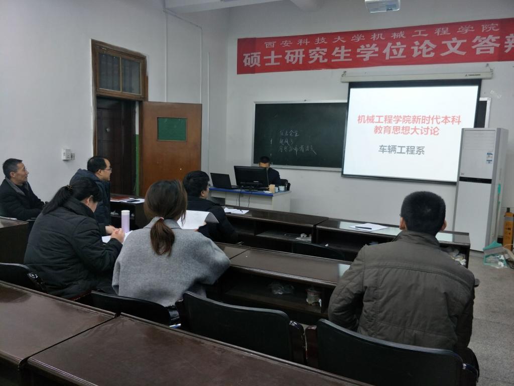 为进一步转变办学理念,凝聚发展共识,努力推动系(教研室)各项工作有序开展,2019年1月3日,车辆工程系在雁塔校区机械工程学院三楼303教室召开车辆工程新工科专业建设系暨新时代本科教育思想大讨论。会议由高怀斌老师主持,全系教职工参加了会议。