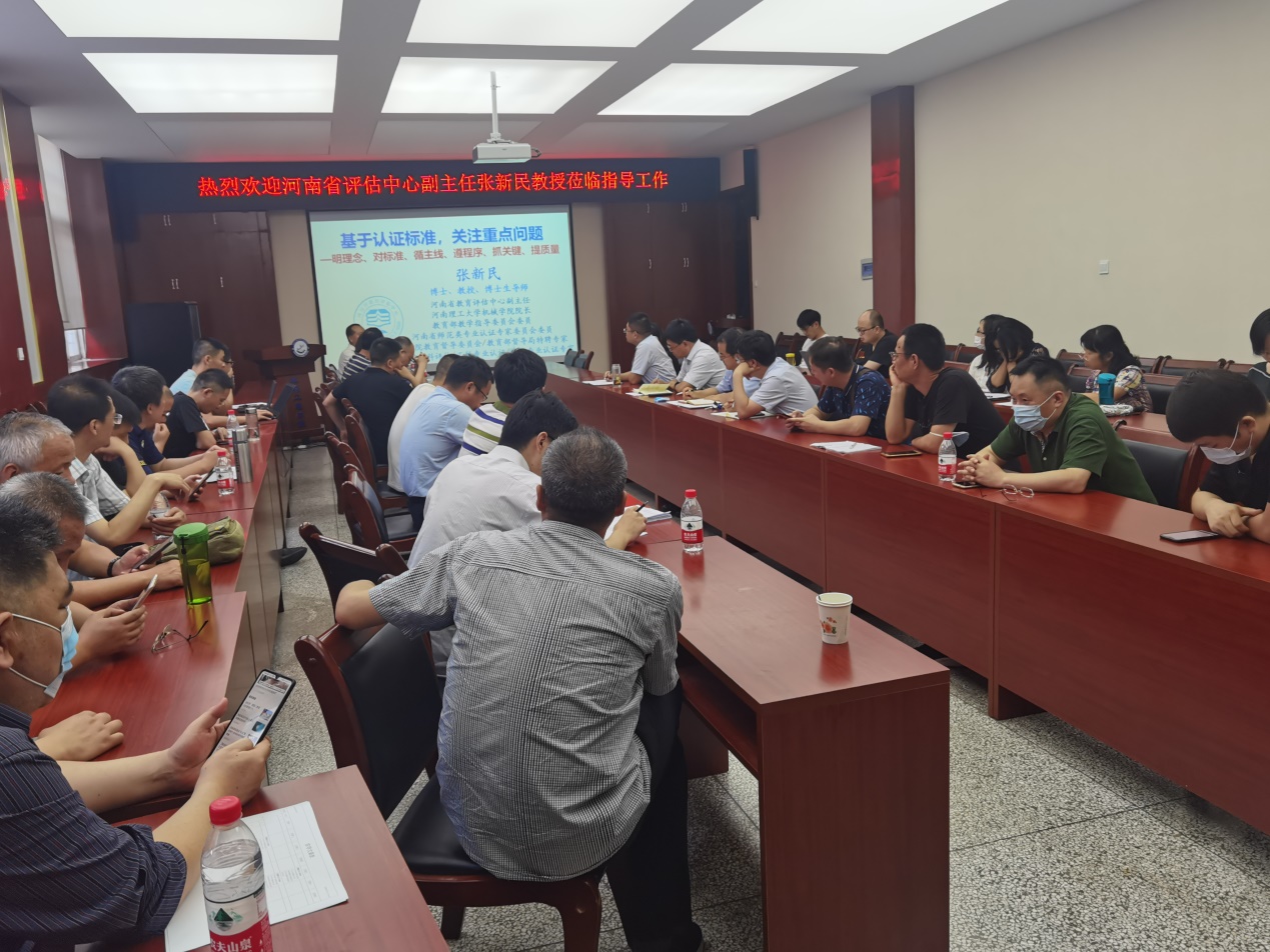 为有效开展工程教育专业认证工作,机械工程学院召开了工程教育专业认证专家报告会,特邀教育部高等学校教学指导委员会委员、教育部工程教育认证专家、河南省教育评估中心副主任张新民教授作了题为《对标准抓关键提质量一以专业认证理念引领专业建设》的专题报告。机械工程学院领导班子、相关专业负责人、计算机学院相关专业负责人、专业教师、校级督导专家等参加了报告会。