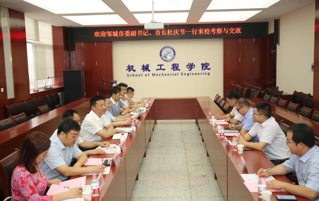 6月19日上午,山东邹城市委副书记、市长杜庆节一行来校考察交流,并在雁塔校区北院机械学院会议室召开座谈会,邹城市邹城经济开发区、投资促进局、山东天河科技股份有限公司等单位负责人,机械学院党委书记张金来、院长张旭辉、科技处副处长张涛、副院长寇发荣参加。座谈会由副院长寇发荣主持。