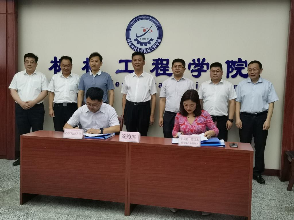张金来首先致欢迎词,并介绍了学校及机械学院的历史沿革和发展现状。张涛对学校科研成果、科研特色方向、科研团队情况等进行了详细阐述,尤其学校在煤矿开采领域的科研成就。张旭辉从学院学科建设、人才培养、科学研究等方面进行了介绍,并指出学院与天河科技前期已开展了深度的校企合作,双方今后合作空间广泛。接下来,杜庆节介绍了邹城市的基本情况,强调了邹城市特色产业和校企合作的必要性,并对机械学院在煤矿智能装备、智能机器人等领域取得的科研成就表达了浓厚的兴趣。会后,张旭辉代表学院与思莫特计算技术研究院(山东)负责人签订了技术合作协议。