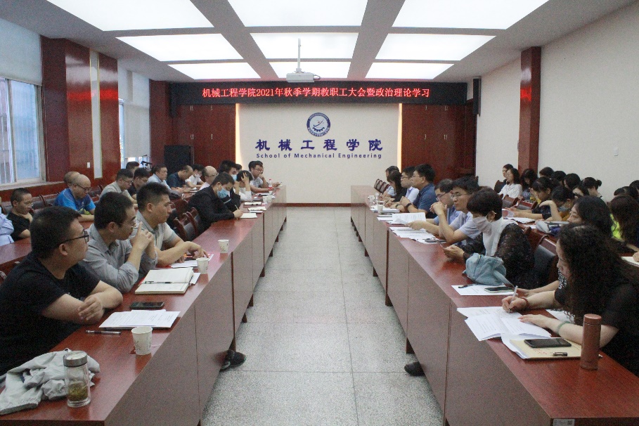 9月8日下午,机械学院在雁塔校区召开2021年秋季学期教职工大会暨政治理论学习会议,学院领导班子成员、全体教职工参加会议。