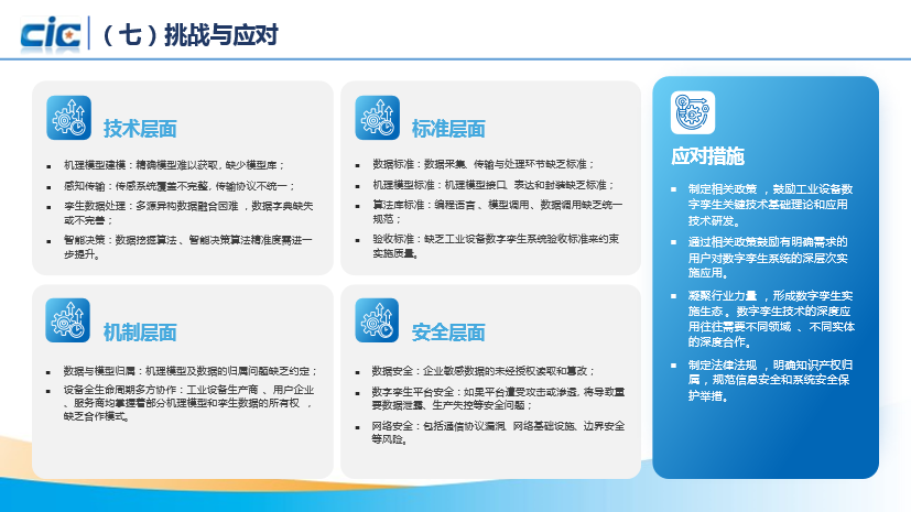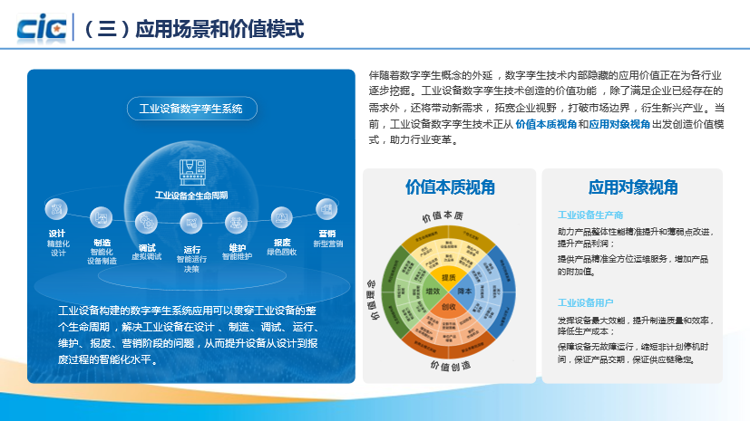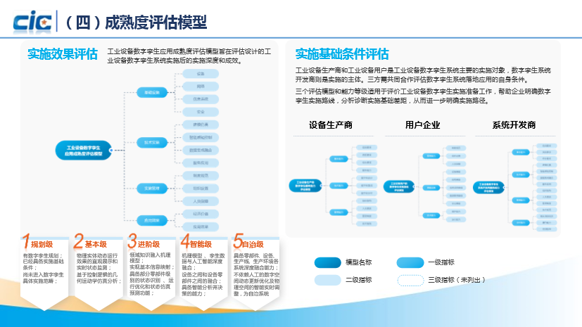 该白皮书由国家工业信息安全发展研究中心和山东大学主编,中国船级社、中车青岛四方、西安科技大学等33家单位参编完成。白皮书系统地介绍了数字孪生的起源、发展和工业应用现状,从实施要素维度提出工业设备数字孪生的总体框架模型,针对工业设备数字孪生实施中面临的痛点问题,从工业设备系统生产商、用户、工业设备数字孪生系统开发商等视角研究提出工业设备数字孪生系统实施成熟度评估模型,为评估工业设备数字孪生系统的实施准备和成效提供了方法论,围绕数字孪生在不同行业应用场景提供了风电设备、工程装备、数控机床等11类设备、32个数字孪生典型案例。