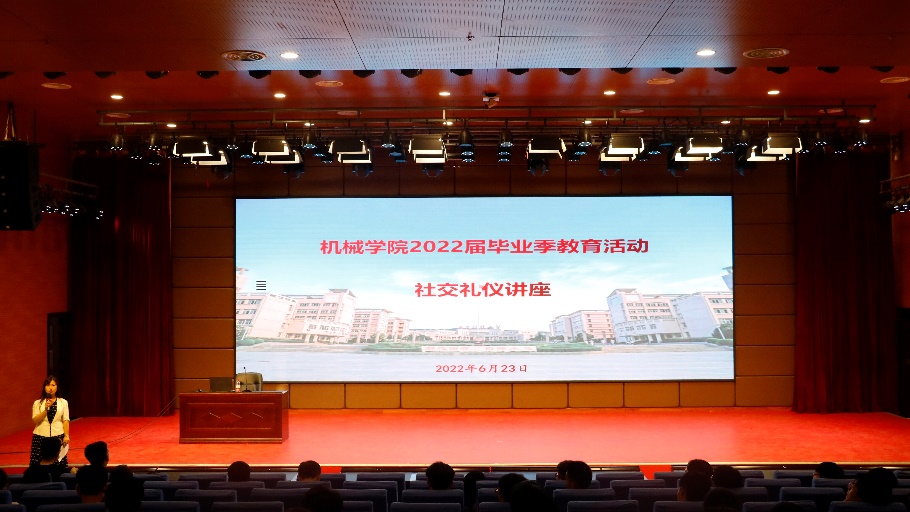6月23日晚,机械学院在骊山校园煤炭科技中心报告厅举办2022届毕业生社交礼仪专题讲座《沟通礼仪助您成功》。本次讲座由中国高等教育学会公共专业委员会理事,公共关系高级讲师,教育部考试中心授予的高级礼仪导师及高级礼仪训练师,西安科技大学马克思主义学院荆秀芳副教授主讲,全体2022届毕业生、毕业班辅导员参加学习,机械学院党委副书记尹弘主持讲座。