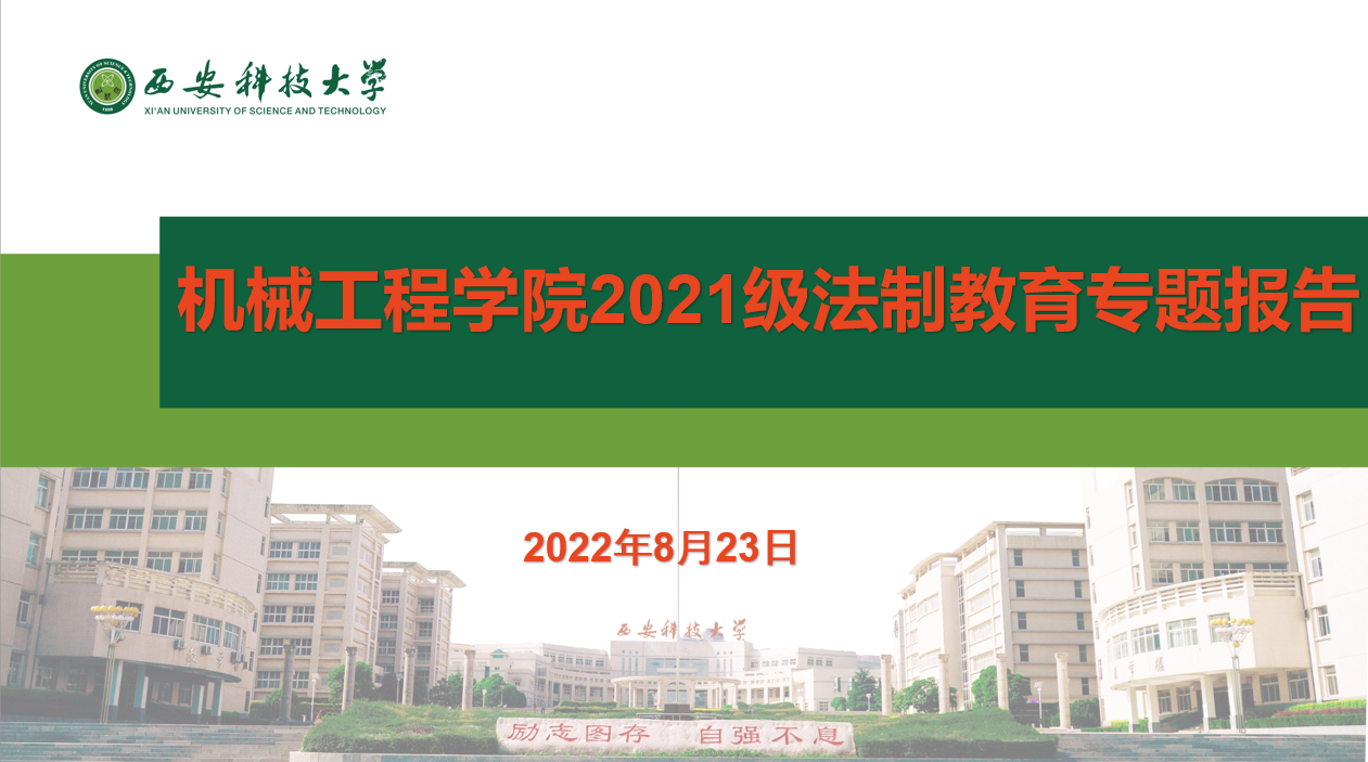 为增强同学们的法治意识和法律观念, 8月23日上午,机械工程学院举办线上2021级学生法制教育专题讲座。本场讲座由西安科技大学马克思主义学院舒真副教授主讲。学院党委副书记尹弘、21级辅导员张笑晗以及2021级全体学生参加讲座。学院学工办主任、团委书记周学刚主持报告会。