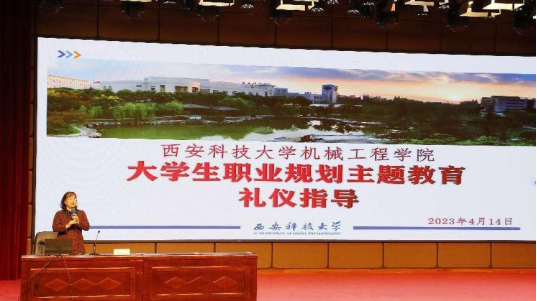 为进一步做好新时代大学生职业生涯规划指导,4月14日下午,机械学院在骊山校园煤炭科技中心报告厅举办大学生职业规划主题教育专题讲座《沟通礼仪助您成功》。本次讲座由中国高等教育学会公共专业委员会理事,公共关系高级讲师,教育部考试中心授予的高级礼仪导师及高级礼仪训练师,西安科技大学马克思主义学院荆秀芳副教授主讲。2020级全体本科生、团委学生会干部、2019级学生代表共500余人参加学习,讲座由辅导员杨迪珂主持。
