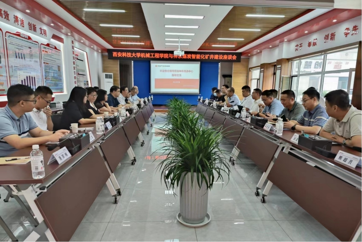 31日上午,调研组成员与神东煤炭洗选中心进行交流座谈。曹现刚对神东公司多年来对学院的大力支持表示了诚挚的感谢,同时对神东公司在煤矿智能化方面取得的成就表示充分肯定。期待通过此次座谈会进一步深化学院与神东公司的合作,共同推进人才培养、科学研究和毕业生就业等方面取得新的发展,深化产学研用,助力推动神东公司煤矿智能化水平持续提升。毛清华介绍了学院基本情况,以及学科建设、科研成果等情况,与会教师逐一介绍了各自科研方向。神东煤炭洗选中心主任郭建军等对曹现刚一行表示热烈欢迎,并详细介绍了洗选中心的现状和发展动态。互动环节,双方就洗选降尘降噪,人员不安全行为智能识别,洗选智能拣矸拣杂和皮带撕裂智能检测等技术问题进行了讨论交流。双方一致表示要凝聚共识,进一步强化联合攻关,在技术研发、人才培养、毕业生招聘、重点项目推进等方面加强合作取得新的突破,积极探索精准对接合作新模式和新机制,充分发挥神东公司优势和西科大机械学院的科研优势,促进创新链产业链深度融合,强化创新合作,实现互利共赢,共同助力服务区域经济社会和煤炭行业高质量发展做出更大贡献。