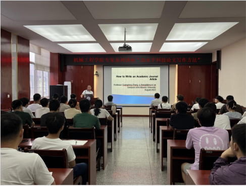 8月28日下午,机械工程学院邀请英国利物浦约翰摩尔斯大学张广明教授作了题为“高水平科技论文写作方法”的专题讲座。机械工程学院副院长赵栓峰教授和博士硕士研究生共100余人参加。讲座由副院长毛清华教授主持。
