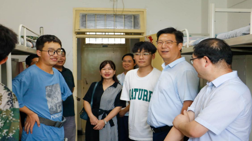 8月31日下午,机械工程学院党委书记郭小平、院长曹现刚、副书记尹弘以及2023级新生辅导员一行赴学生公寓看望2023级新生。