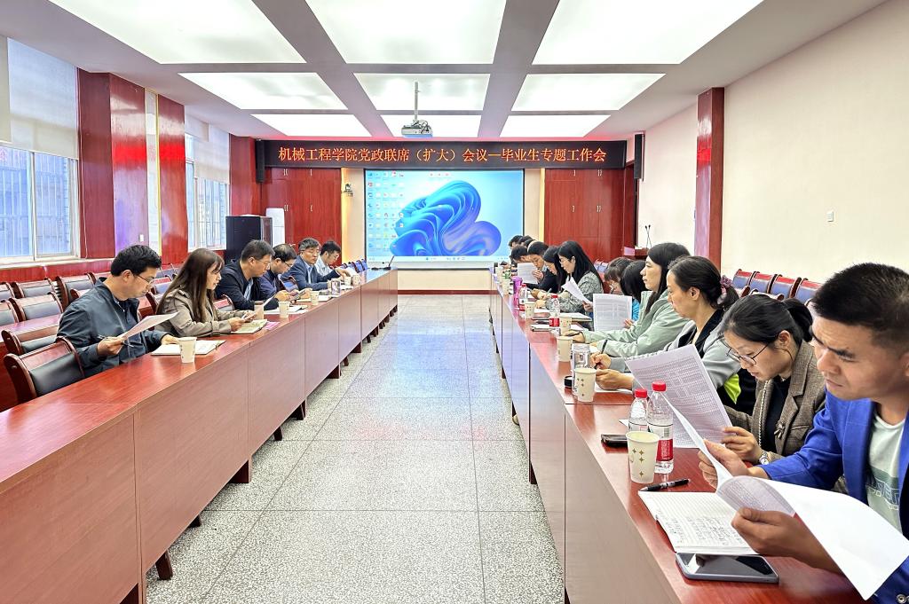 为持续深化学习贯彻习近平新时代中国特色社会主义思想主题教育,进一步落实学校关于加强学生考研报名再动员工作要求,推进2024届毕业生就业工作。10月15日下午,机械工程学院在雁塔校区学院会议室召开党政联席(扩大)会议专题研究毕业生就业工作。学院全体领导班子成员,各系系主任、支部书记、毕业班辅导员、班主任参会。院长曹现刚主持会议。