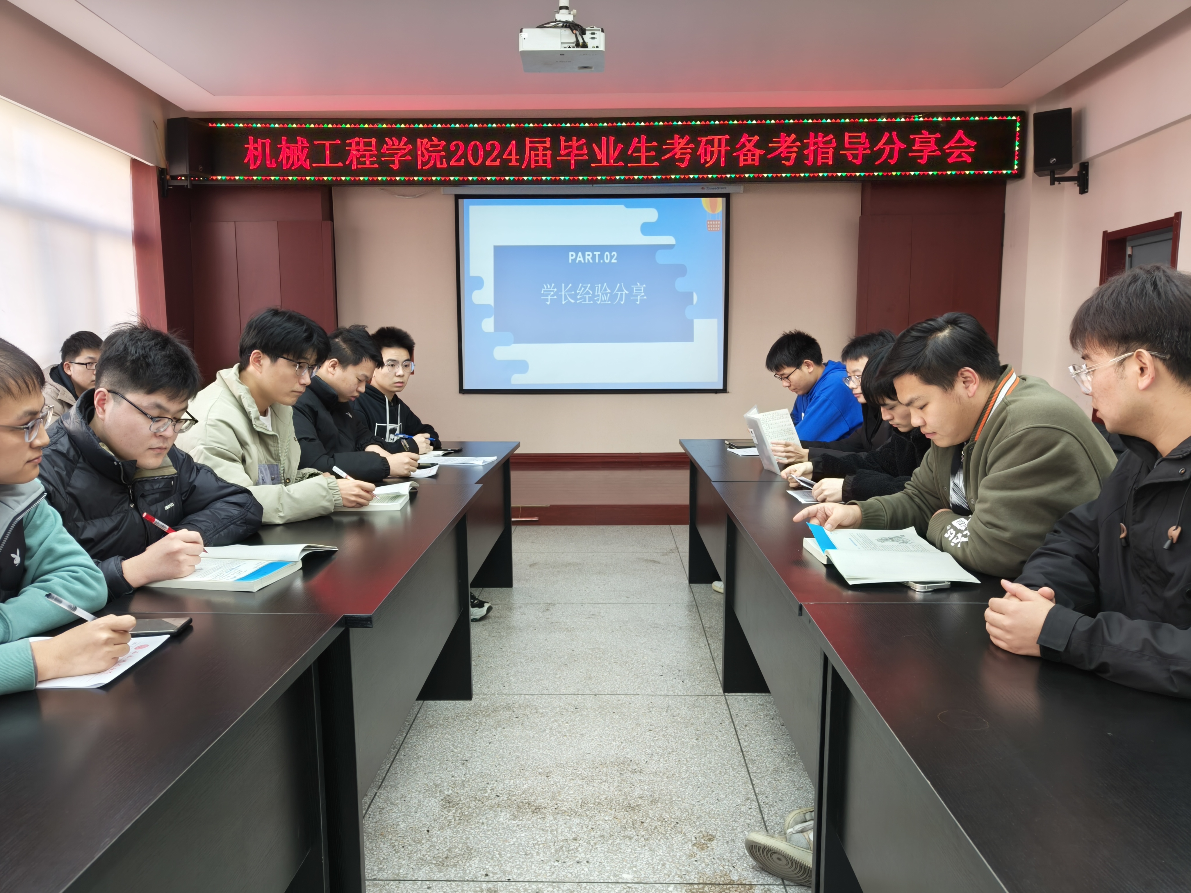 长达两个半小时的研考交流分享会热烈,学习氛围浓厚。参会同学表示“干货满满”,指导及时且契合实际,为24届备战研考同学增强了考研信心。未来,机械工程学院将持续以学风建设为主线,发挥优秀学子的典型示范作用,引导学生增强专业归属感,坚定成才自信,不断激发同学们学习的主观能动性,不断健全学院优良学风建设长效机制。