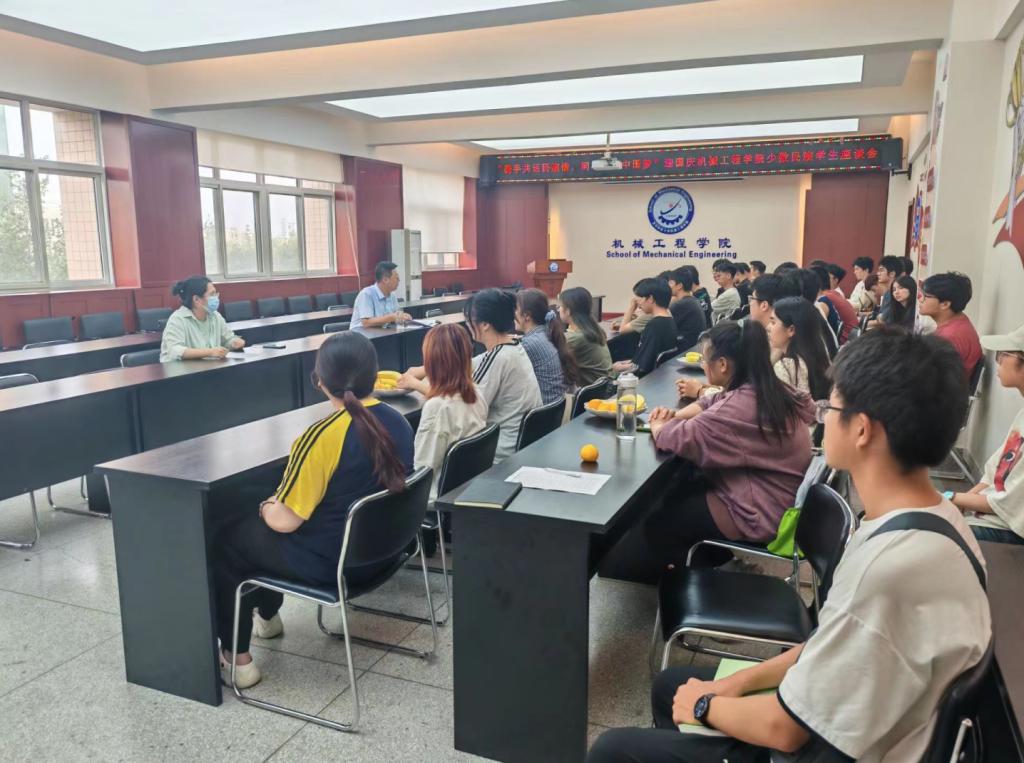 为进一步铸牢中华民族共同体意识,深化民族团结进步教育,促进各民族学生交往交融。9月25日下午,机械工程学院在骊山校园学院320会议室召开“携手共话民族情,同心共筑中国梦”迎国庆少数民族学生座谈会。学院党委书记郭小平、辅导员及全体少数民族本科生参加座谈会。