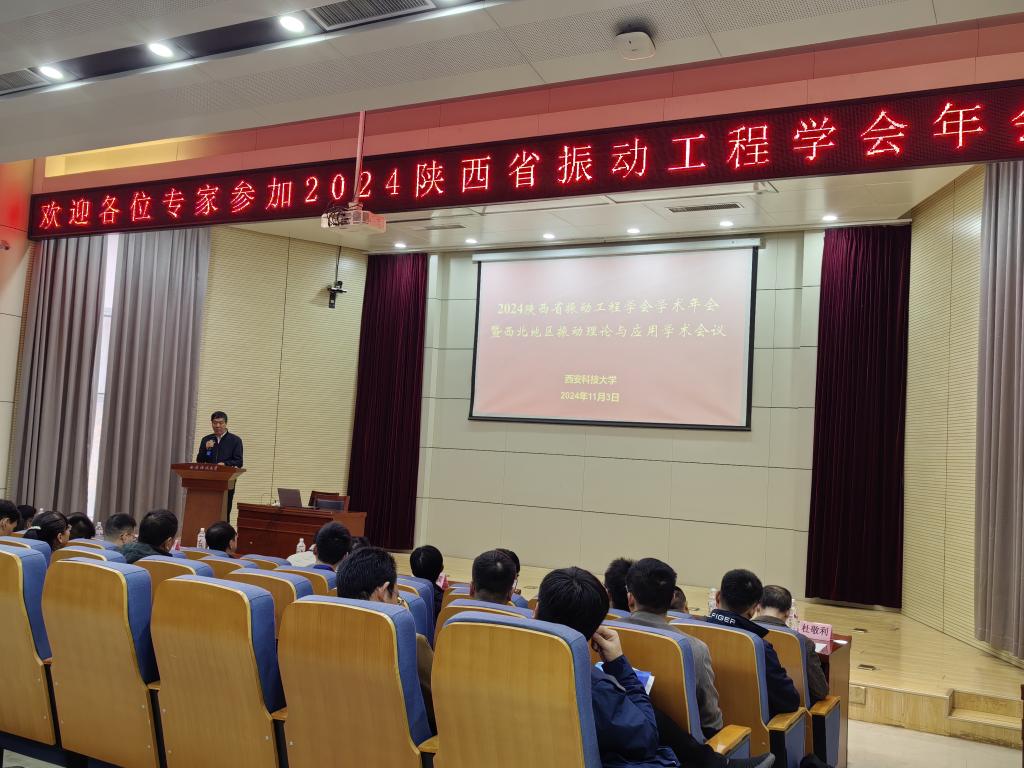 11月3日,陕西省振动工程学会2024年学术年会暨西北地区振动理论与应用学术会议在西安科技大学雁塔校区顺利召开。本次会议由陕西省振动工程学会主办,西安科技大学机械工程学院承办,理学院、电气与控制工程学院协办,我校副校长文虎教授出席会议开幕式并致辞,机械工程学院院长曹现刚教授、副院长毛清华教授,理学院原院长李明教授、副院长李自刚副教授,电气与控制工程学院院长寇发荣教授和相关学院师生200余人参加了此次会议。