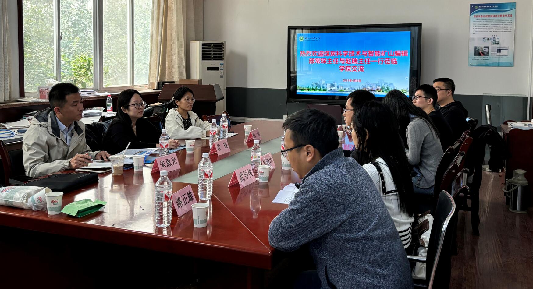 为促进机械工程学院教师对《煤炭科学技术》《智能矿山》的了解,进一步提升学院学术论文质量,加强学院教师与《煤炭科学技术》《智能矿山》的交流合作。4月9日上午,《煤炭科学技术》编辑部主任常琛、《智能矿山》编辑部主任赵瑞、资深编辑朱恩光受邀来机械工程学院交流座谈。座谈会由机械工程学院副院长毛清华主持,机械工程学院院长曹现刚和部分教师代表参加了交流座谈。