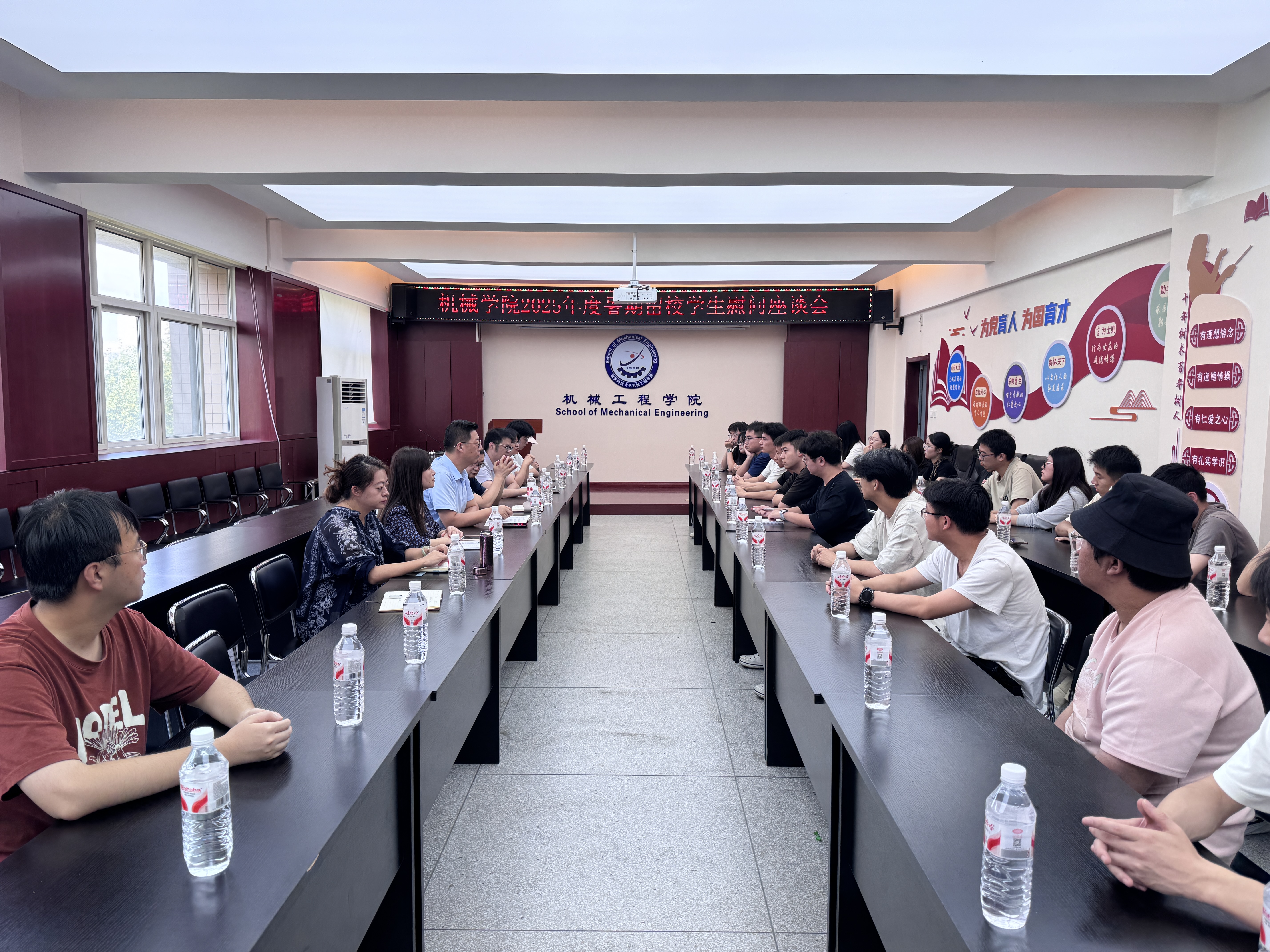 烈日炎炎情更浓,为深入了解关怀暑期留校学生学习生活情况,进一步做好留校学生考研备考指导等工作,2025年7月29日下午,机械工程学院在骊山校园学院320会议室召开暑期留校学生慰问座谈会。学院党委书记郭小平、院长曹现刚、副院长钟斌、机械设计系副主任、22级本科生班主任代表高扬副教授、学工办主任、团委书记、22级辅导员吕叻加、杨迪珂以及暑期留校学生代表参加座谈交流,会议由学院党委副书记尹弘主持。
