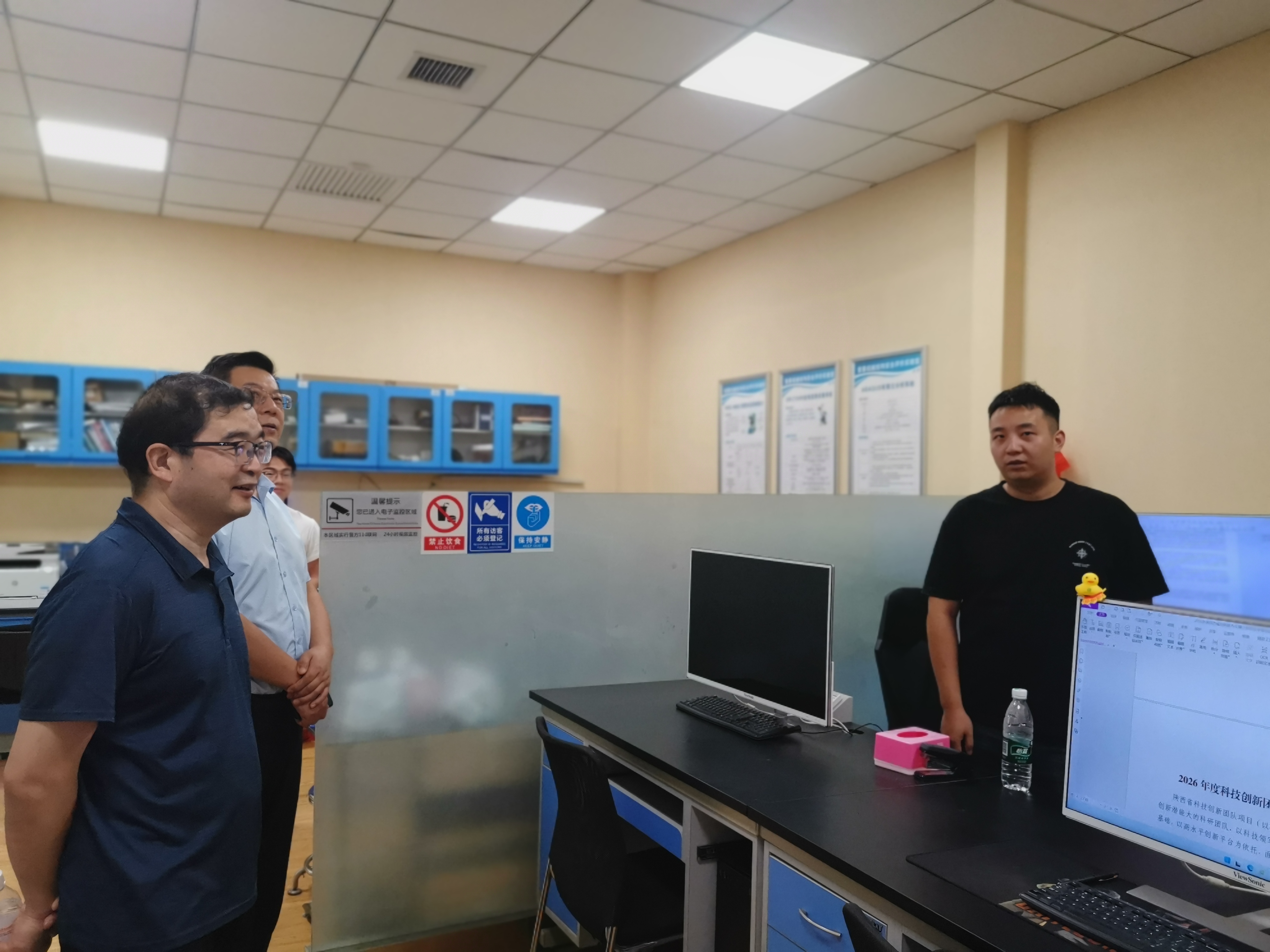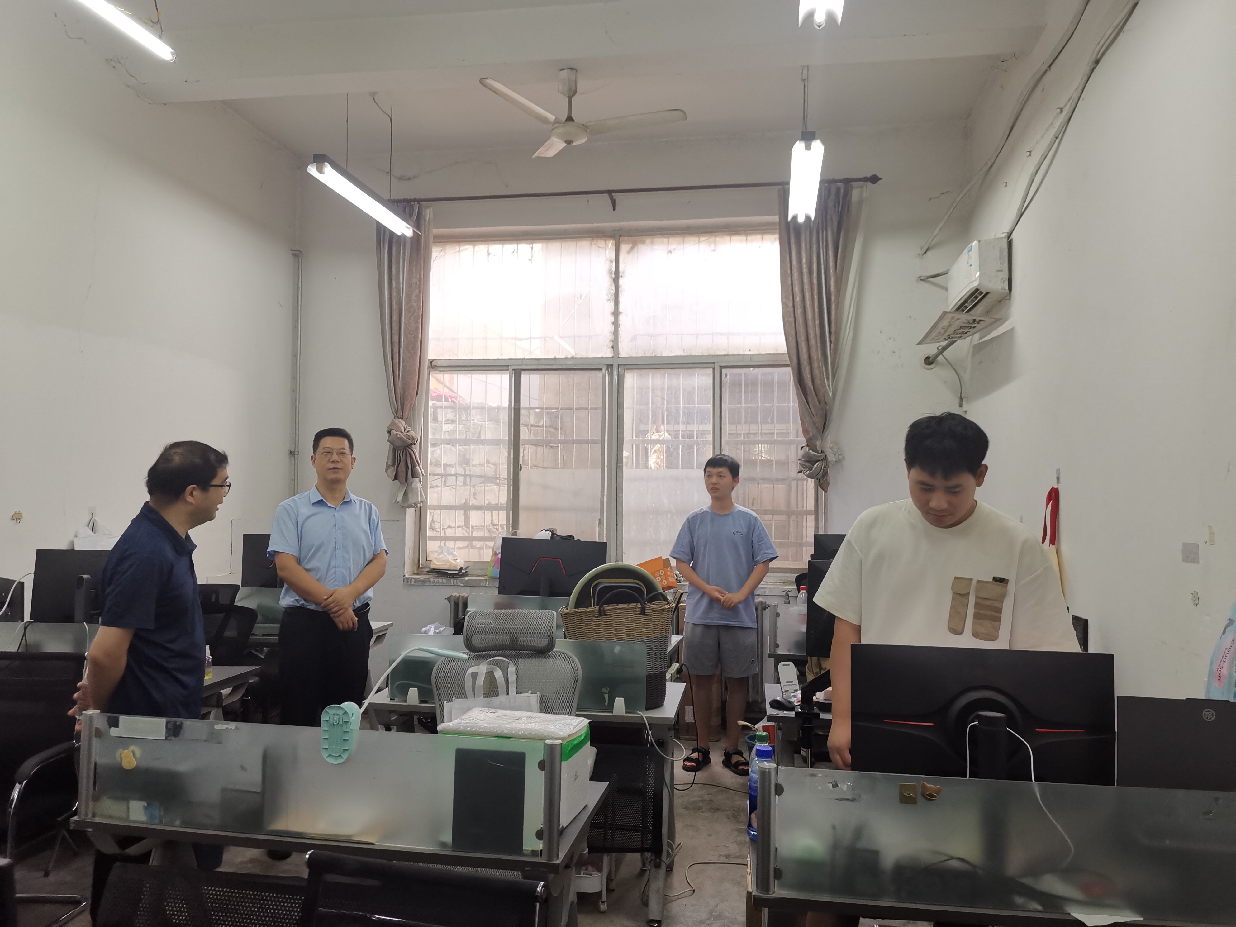 郭小平、曹现刚、赵栓峰等在走访慰问雁塔校区留校研究生工作室过程中,逐一询问了留校学生学习科研进展,对规律作息、健康饮食、注意防暑降温以及用电安全及防诈骗等事项进行了强调和指导。