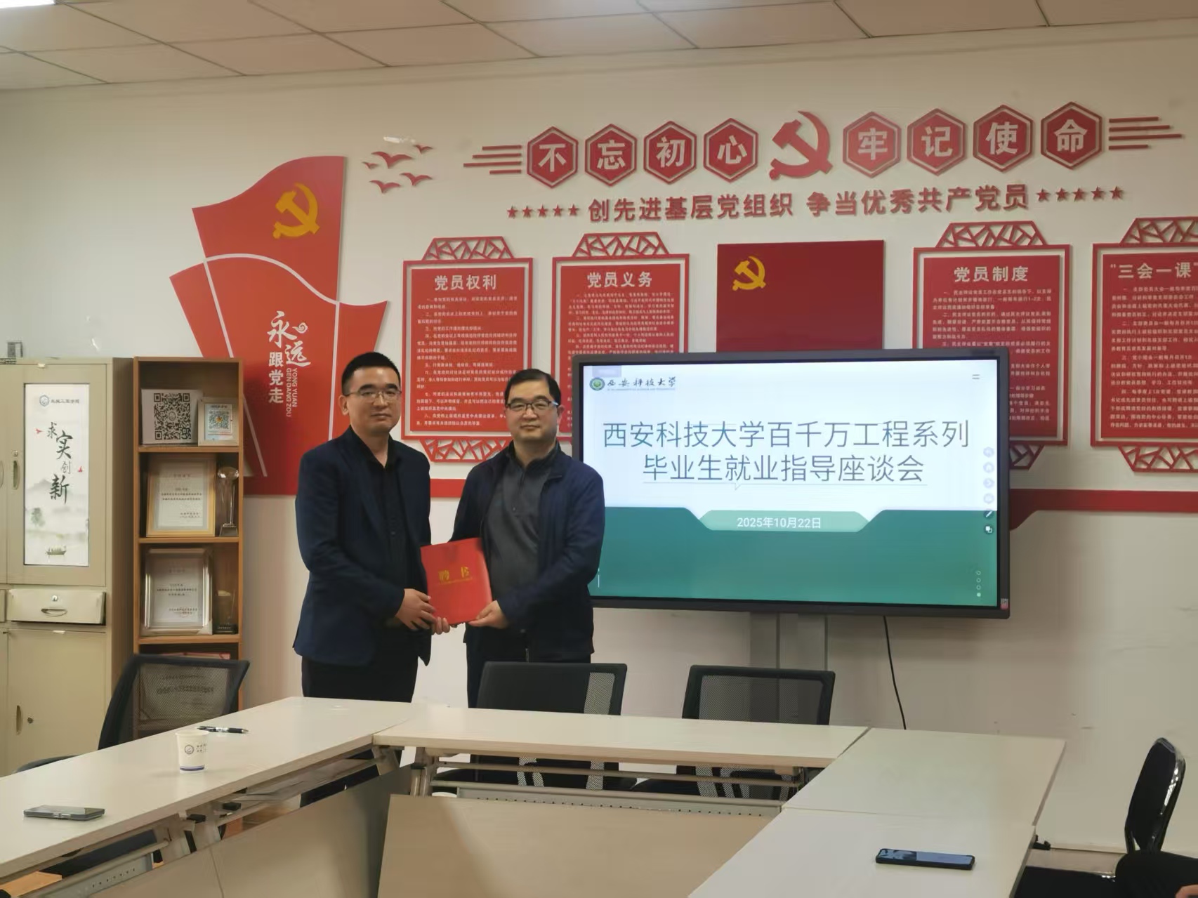 为助力我院2026届毕业生进一步提升就业竞争力,12月22日下午,机械工程学院在骊山校园学院316会议室举办了西安科技大学“百千万工程”系列讲座之毕业生就业指导座谈会。浙江湖州市久立集团人力资源部总经理徐海峰、副总经理姚学平、西安科技大学机械工程学院25届校友弋雨东一行应邀到学院为学生们带来了一场信息饱满、实用的就业指导和咨询解答。学院党委副书记尹弘、毕业班辅导员、毕业生代表参加活动。