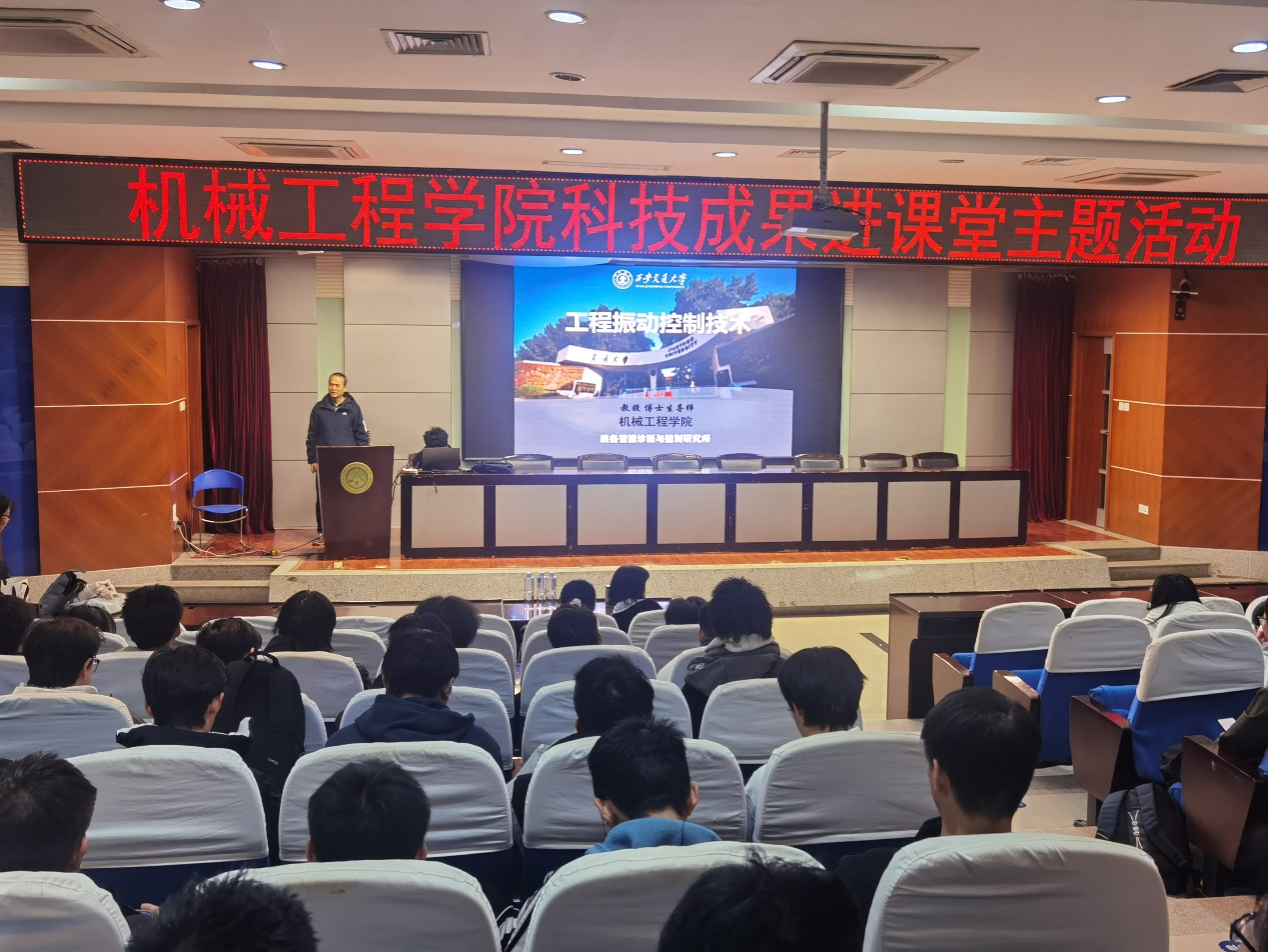 为积极对接国家“十五五”规划中“智能设计与制造”战略导向,深入贯彻落实《西安科技大学科研成果反哺教学工作实施管理办法(试行)》《西安科技大学本科生产教融合、科教融汇育人实施办法(试行)》等文件精神,西安科技大学机械工程学院依托陕西省煤矿智能化现代产业学院等平台,将“科技成果进课堂”从构想转化为生动实践,11月26日晚,机械工程学院在图书馆二楼报告厅成功举办“科技成果进课堂”主题活动报告会——“工程振动控制技术”“掘进工作面智能通风降尘技术及装备研究”。本场讲座由机械设计系牵头组织,学院23级、24级、25级机械设计制造及其自动化卓越、本硕、领军班200余名学生参加学习。机设系主任陈艳主持讲座。