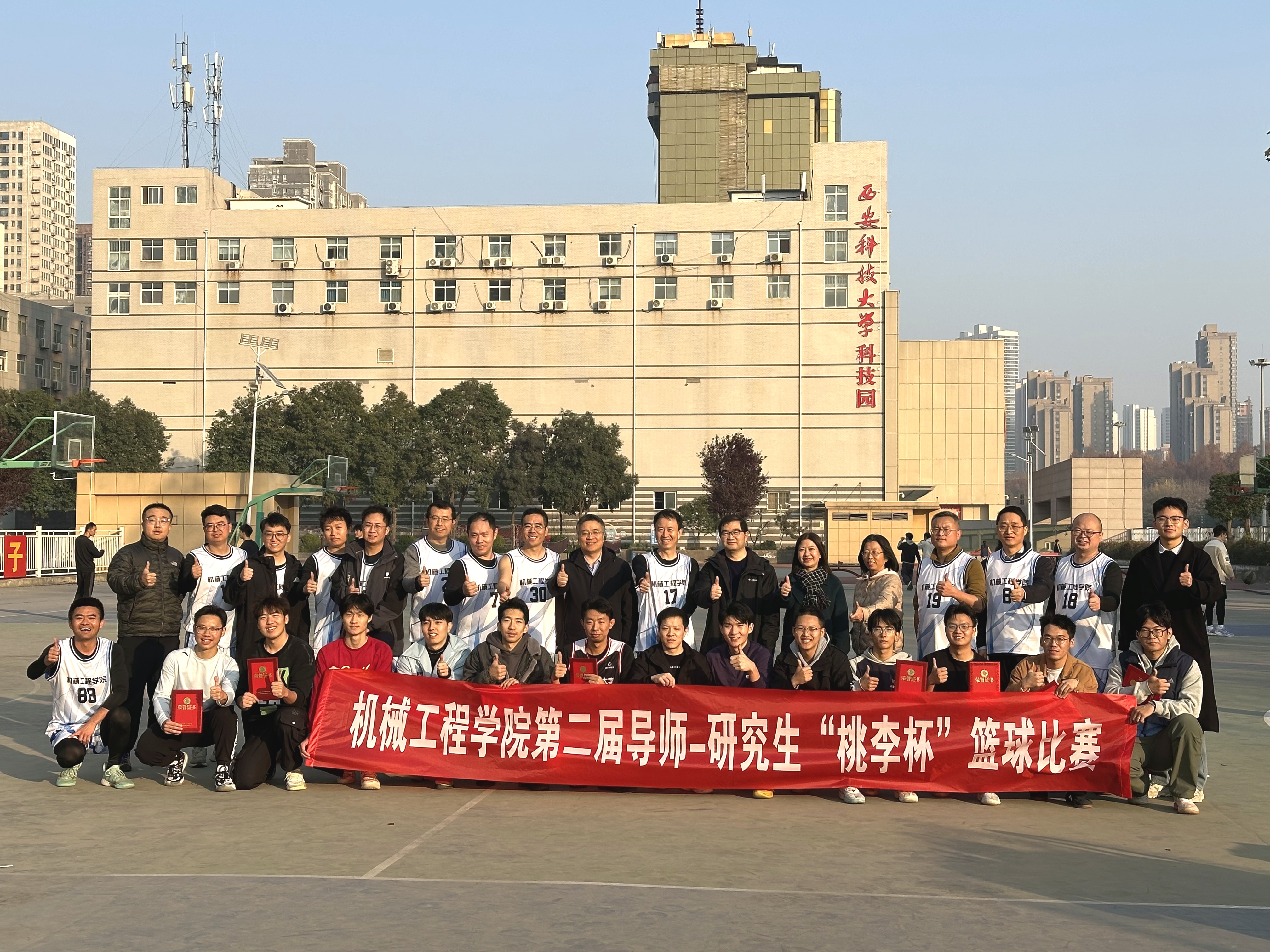 本次“桃李杯”师生篮球友谊赛不仅是一场体育竞技,更是一次增进师生交流、凝聚学院力量的生动实践。不仅为师生搭建了一个平等交流、切磋技艺的优质平台,更在竞技中进一步增强了团队凝聚力与协作意识,让师生在竞技中释放压力,在协作中收获快乐,在丰富校园文化生活的同时也为构建和谐师生关系注入了新的活力,充分展示了机械工程学院师生团结奋进、奋勇拼搏的良好精神风貌。