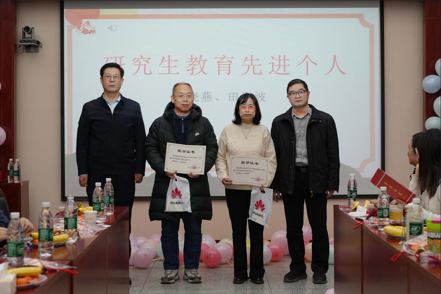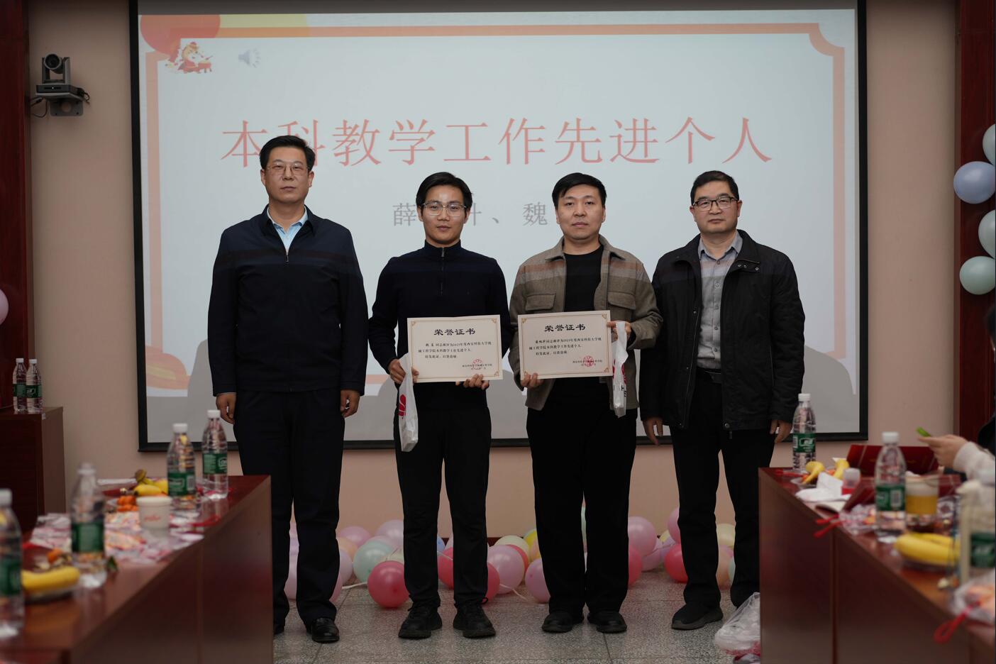 活动第二阶段为表彰环节。学院对2025年度在就业工作中表现突出的机械制造系、机械设计系、车辆工程系授予“就业工作先进集体”荣誉称号,郭小平、曹现刚为获奖集体颁发了奖牌和奖品。同时,对在本科教学、研究生教育、科技竞赛、科研创新、学科建设、工会服务等工作中取得优异成绩的个人进行了表彰。学院班子成员依次为获奖教师颁发荣誉证书,现场气氛热烈,掌声不断。