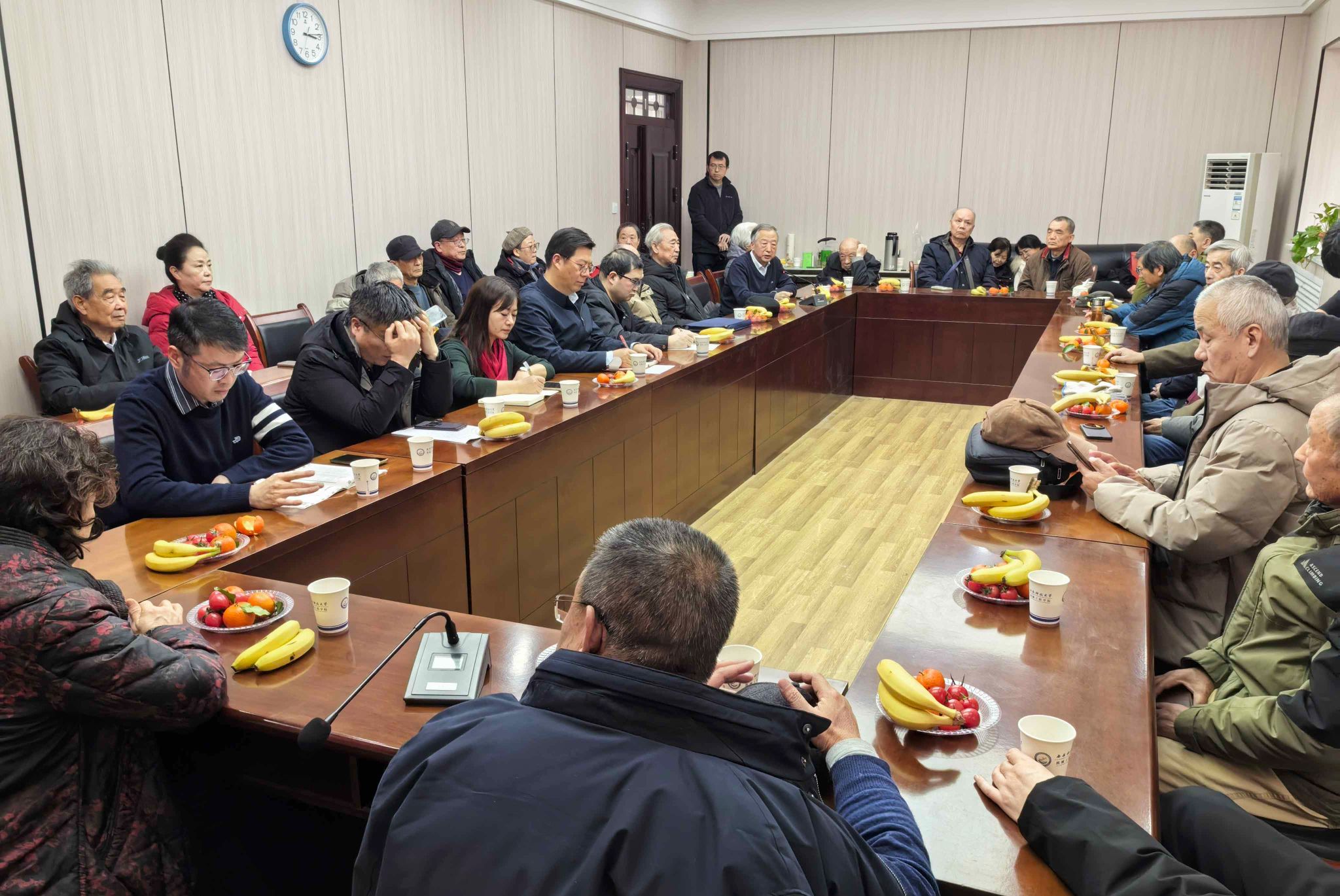 1月30日下午,机械工程学院离退休教职工春节慰问座谈会在雁塔校区南院离退处会议室举行。学院领导班子成员、党委委员、工会主席、办公室主任与离退休教师代表近40人欢聚一堂,笑语盈盈、暖意融融,共话学院发展。座谈会由学院党委书记郭小平主持。