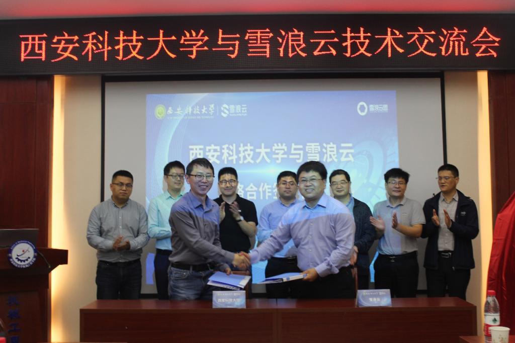 9月29日上午,在机械工程学院210会议室召开了西安科技大学与雪浪云技术交流会。西安科技大学副校长邓军、科技处副处长戴开文、资产经营公司副总经理贾文胜,机械工程学院书记张金来、院长张旭辉、副院长曹现刚等相关领导与雪浪数制科技有限公司CEO王峰、联席创始人副总裁顾毅等进行了技术交流座谈会,并举行了签约和揭牌仪式。
